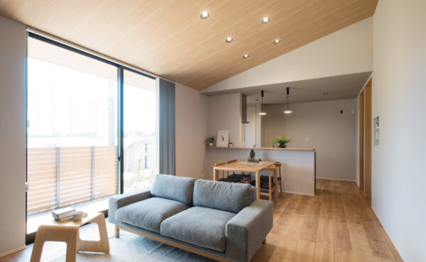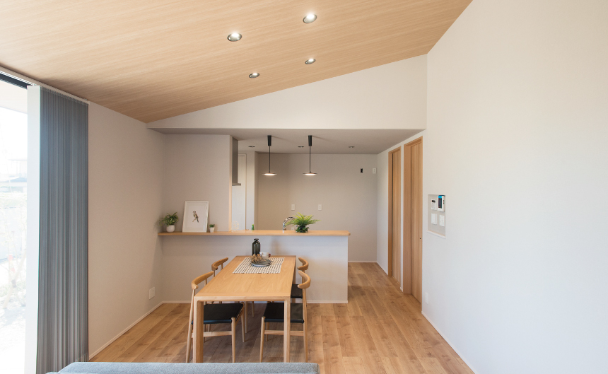 木目の勾配天井とLDKと繋がる広縁が魅力的なお家です。