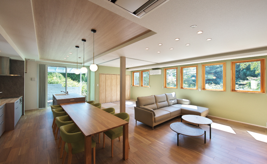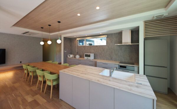 広々としたリビング・ダイニングには機能的なキッチンと大きなテーブルを配置し、ご家族やグループでの滞在にも最適です。