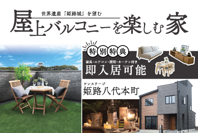 姫路城を望む屋上バルコニーを楽しむ家