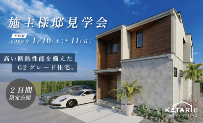 最新のキッチン・空調・収納など、家づくりに取り入れたいヒントや、私たちの家づくりに対する思いを実際に体感してください。KATARIEで建てる注文住宅を経験豊かなスタッフがご案内いたします。