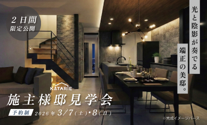3/7(土)・3/8(日)【施主様邸見学会開催】光と陰影が奏でる、端正の美邸
