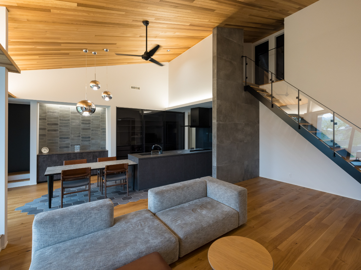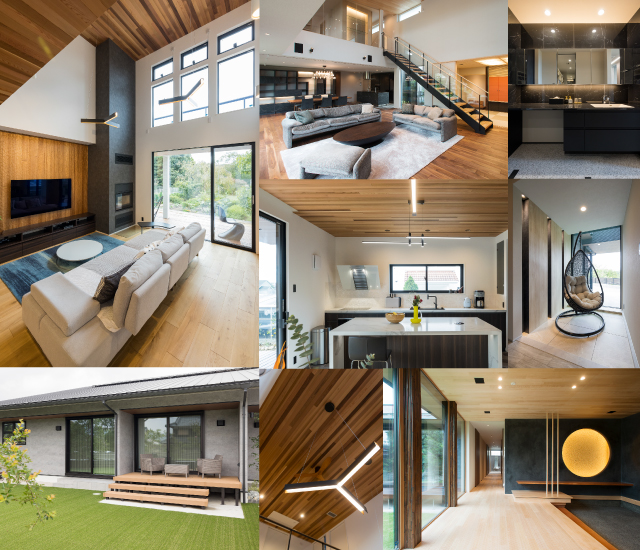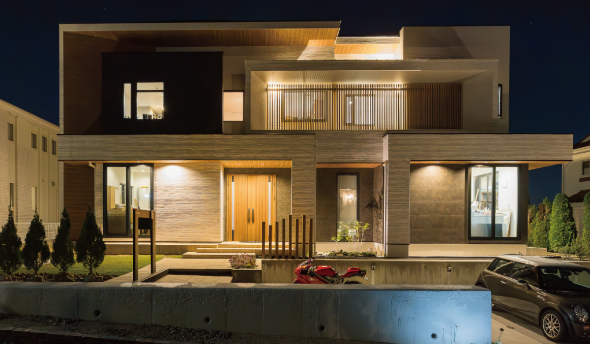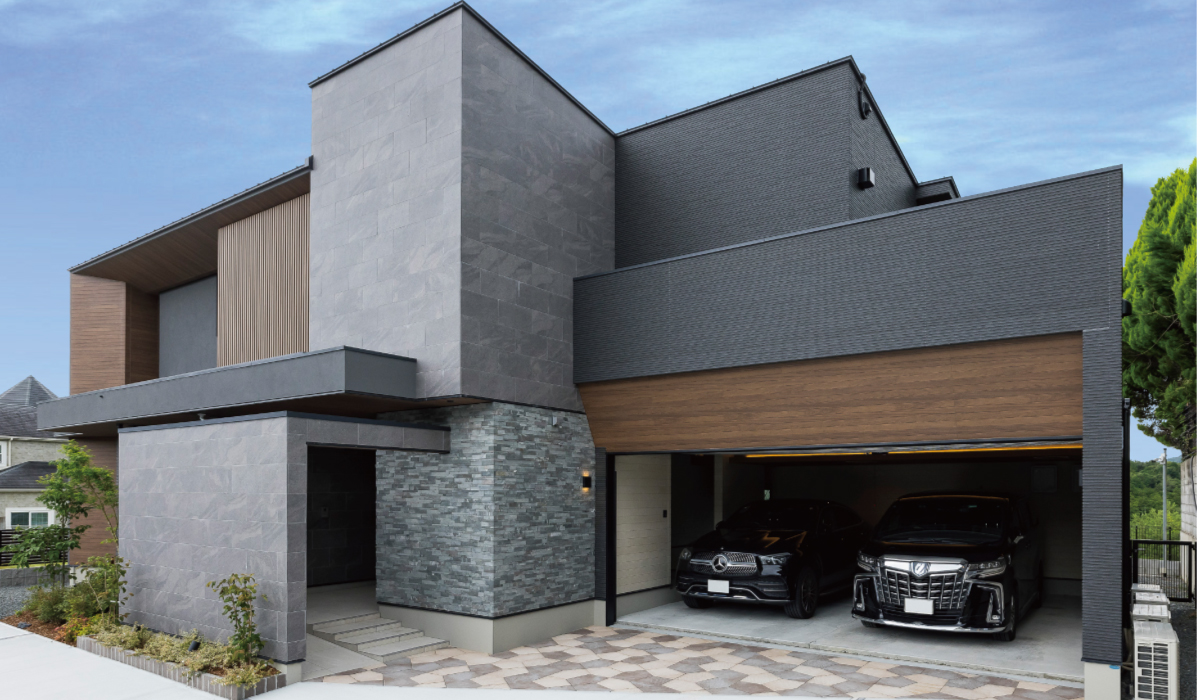 木目×グレーのモダンな邸宅
