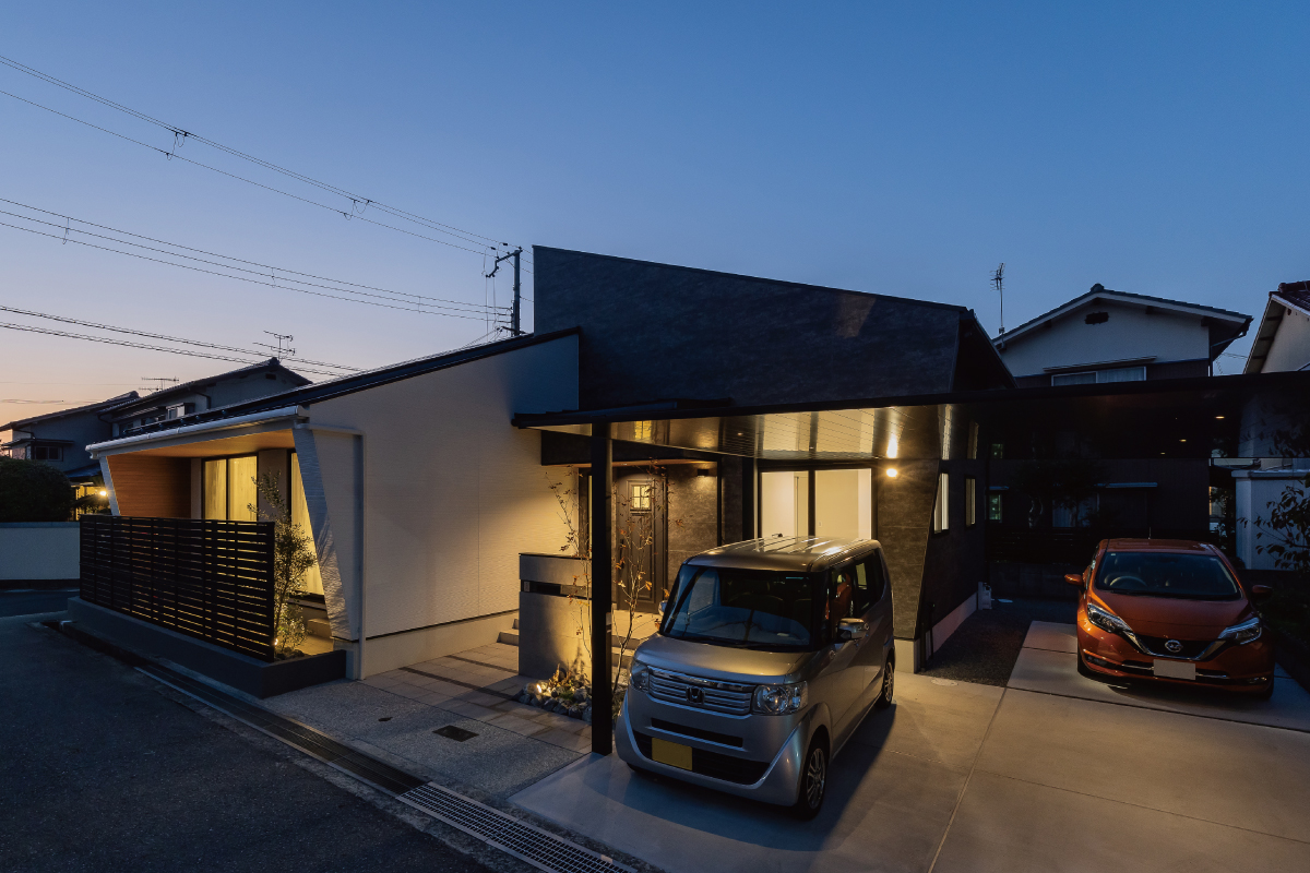 柔らかな光が建物や外構を引き立て、帰宅時にはほっと心が安らぐ、上質で特別な雰囲気を演出します。
