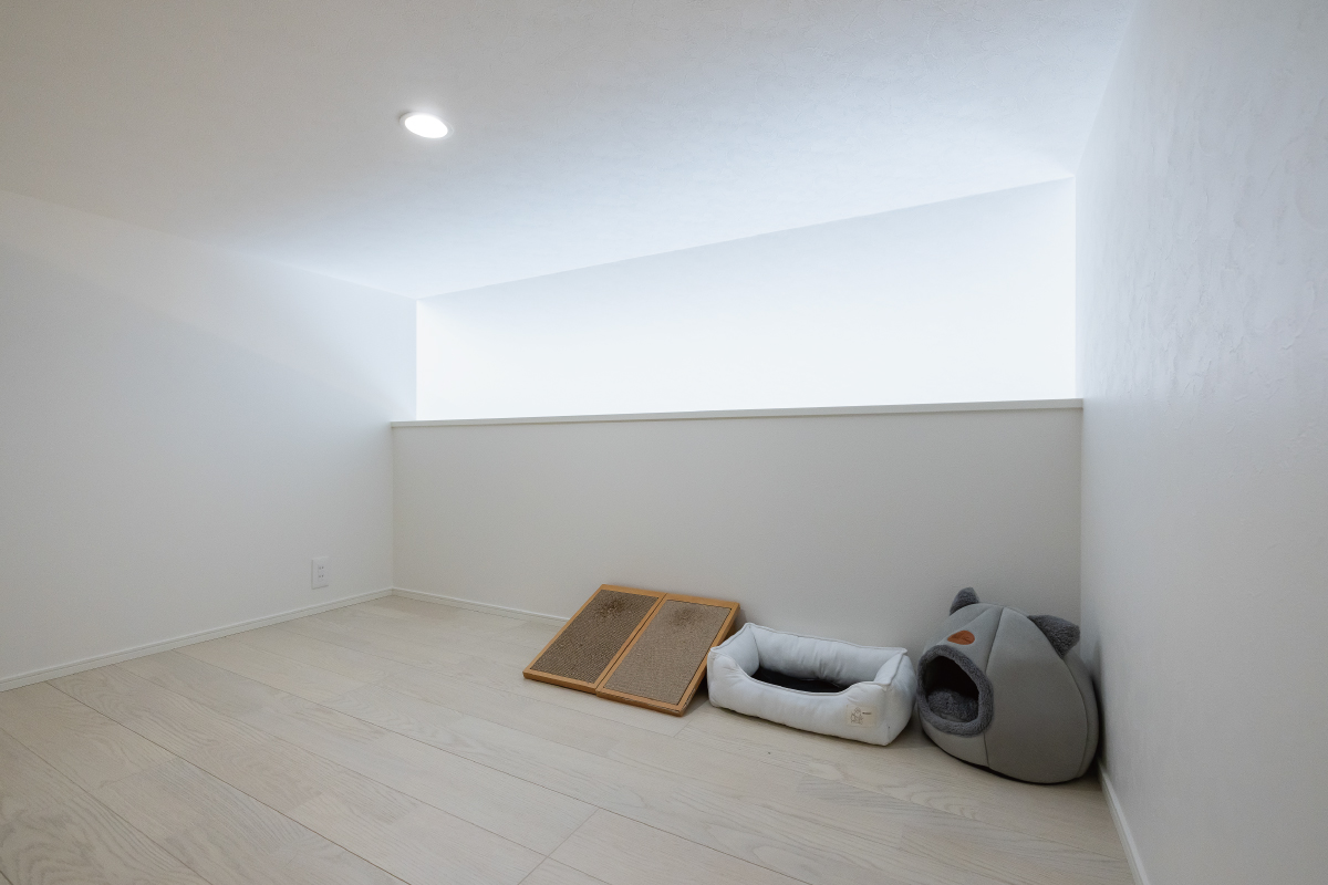 ロフト付きの開放的な平屋。勾配天井の大空間LDKやグラフテクトのキッチンが上質な暮らしを演出します。 猫がくつろげ...