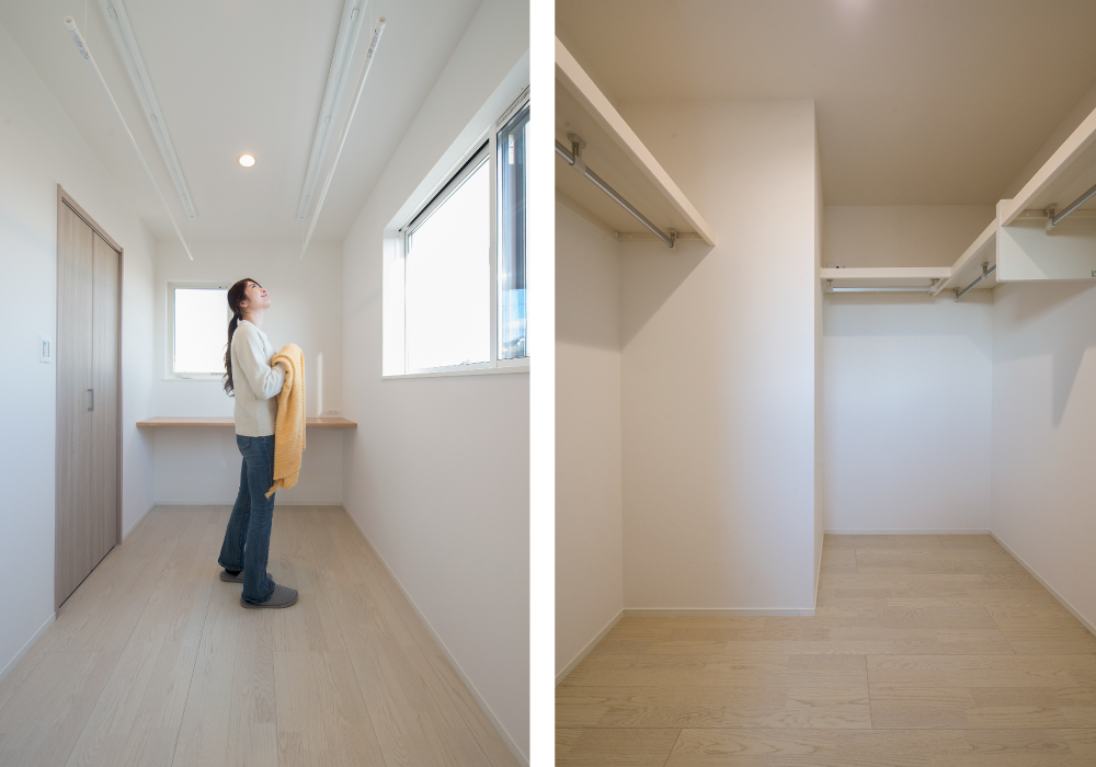 サンルームからWICへの動線で洗濯物もスムーズ。