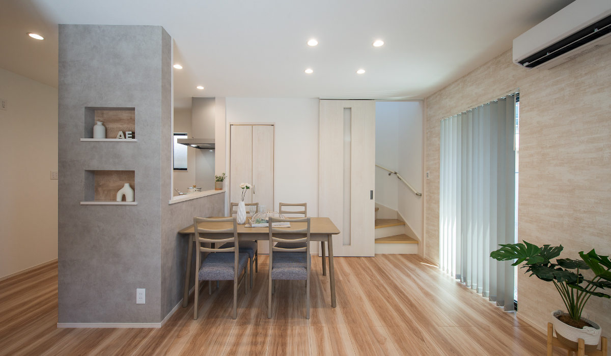 キッチンの壁にはニッチを設け、お気に入りの雑貨を飾れます。