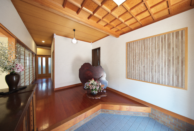 ダイニングの壁面にもエコカラットプラスを施工。玄関とは一味違った豪華な雰囲気になっています。