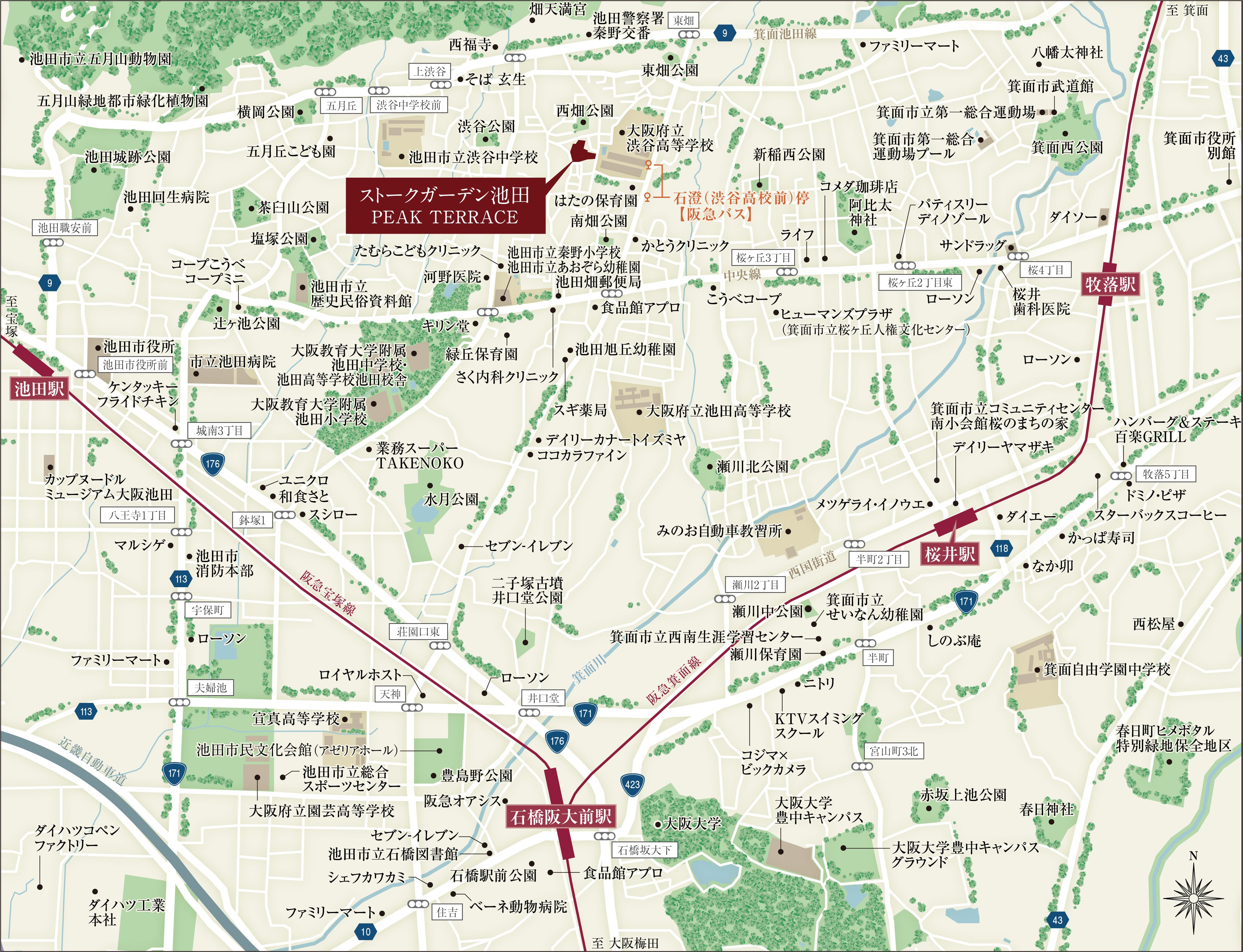 自動車では中国自動車道「中国池田I.C」と、
