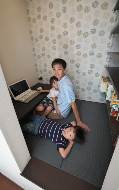 ご主人様のためのコンパクトな書斎は、主寝室の隣に。掘りごたつ式で落ち着く空間です。